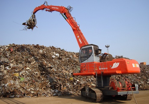 WZYD55-9電動型液壓抓料機適用于鋼廠料場裝卸廢鋼、裝卸火車皮物料、港口碼頭裝卸物料,廢鋼等,具有以下特點: