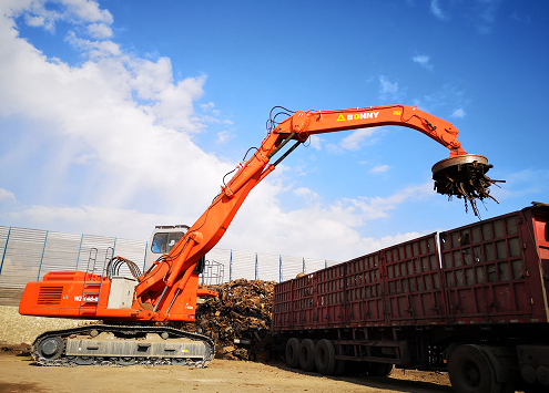 ●可以選擇配備多種工作裝置(抓斗)實(shí)現(xiàn)廢鋼、圓木、木屑、原煤、草料等多種物料的抓取、裝卸