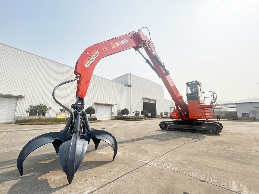 ●可以選擇配備多種工作裝置(抓斗)實(shí)現(xiàn)廢鋼、圓木、木屑、原煤、草料等多種物料的抓取、裝卸